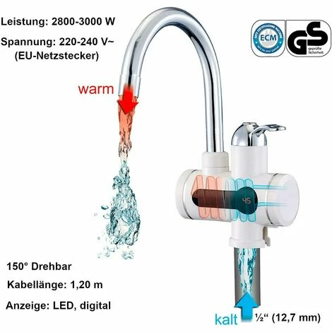Elektrischer Durchlauferhitzer mit LED Temperaturanzeige – drehbar