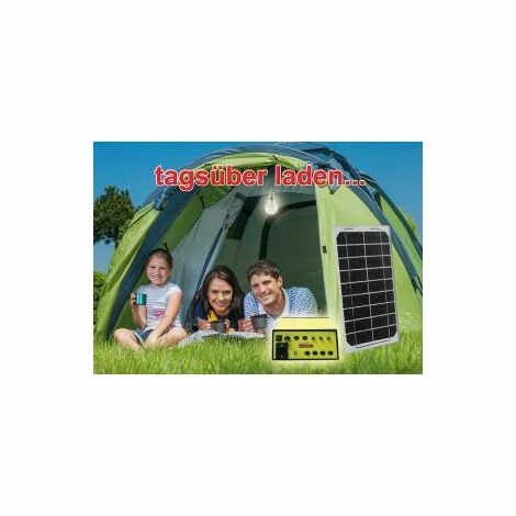 Dieses Powerpack ist ein echter Allrounder. Voll aufgeladen bieten die mitgelieferten 4 LED-Glühbirnen bis zu 18 Stunden volle Leuchtkraft. Durch die integrierte USB-Buchse können Sie beispielsweise über unseren 10 in 1 Adapter alle handelsüblichen Mobiltelefone aufladen.