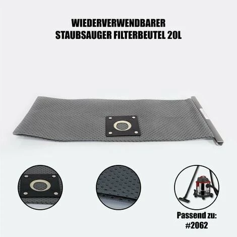 | Der wiederverwendbare Staubsauger Filterbeutel ist optimal geeignet für unseren 20 Liter Nass- und Trockensauger. Er hält viele Saugvorgänge, lässt sich leicht reinigen und schützt den Motor. Durch den Einsatz dieses Filters gelangt der Schmutz nicht in den Saugertank, sondern er wird direkt in den Filter gesaugt. |